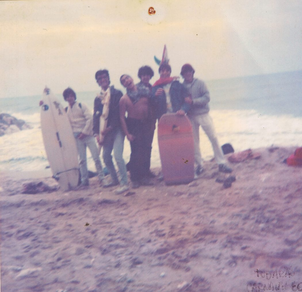 Como grande parte da minha geração, comecei na Praia do Sul com as primeiras experiências nas ondas durante o final da década de 70. Até ter o meu primeiro Bodyboard, em 1982, os saudosos colchões “repimpa” preenchiam-nos os longos dias de Verão e fomentaram o bichinho pelas ondas. Surgiram também neste período as primeiras pranchas de esferovite. Como se partiam com grande facilidade, aproveitei muitas e fui substituindo os “repimpa”. Até tive uma prancha feita por um amigo com shape de um Morey Boogie 136, em esferovite, contraplacado e revestida com cola de madeira.